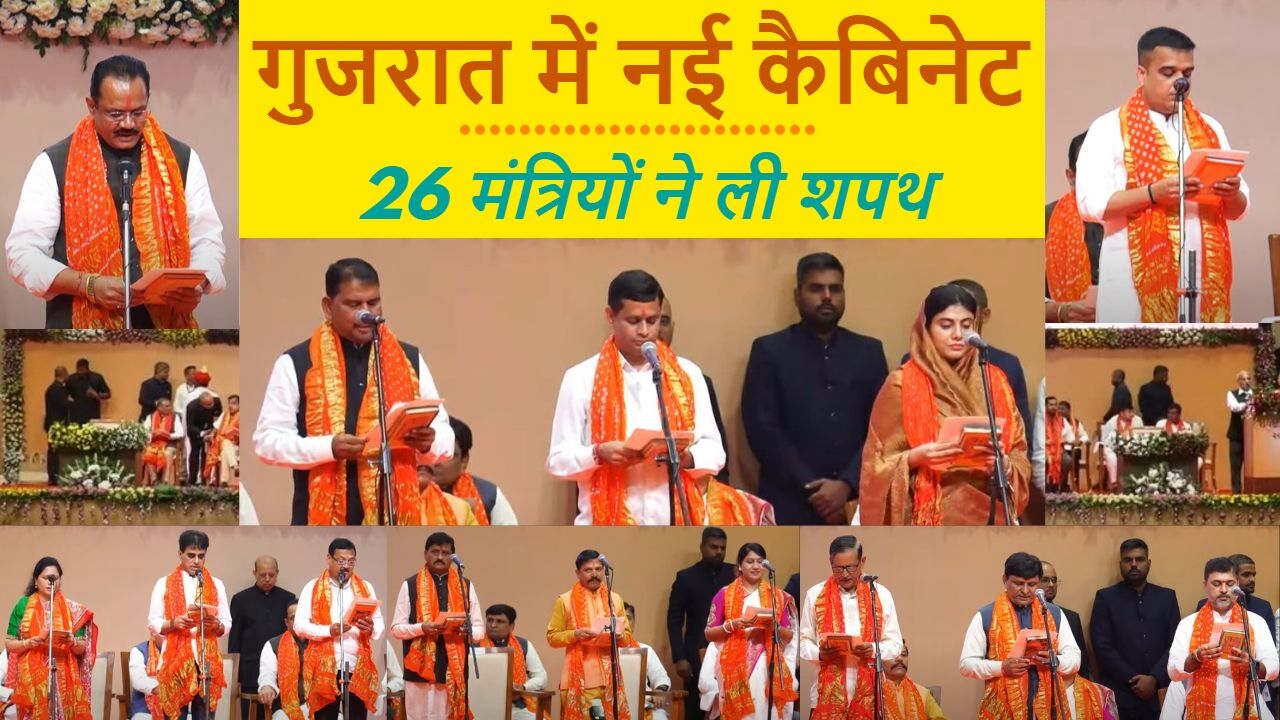 गुजरात में भाजपा सरकार ने शुक्रवार को 26 सदस्यीय नई कैबिनेट का गठन किया। मुख्यमंत्री भूपेन्द्र पटेल की नई कैबिनेट में छह मंत्रियों की वापसी हुई है, जबकि 19 नए सदस्यों को शामिल किया गया है। गृह मंत्री हर्ष सांघवी को उप मुख्यमंत्री बनाया गया है। उन्होंने सबसे पहले शपथ ली।