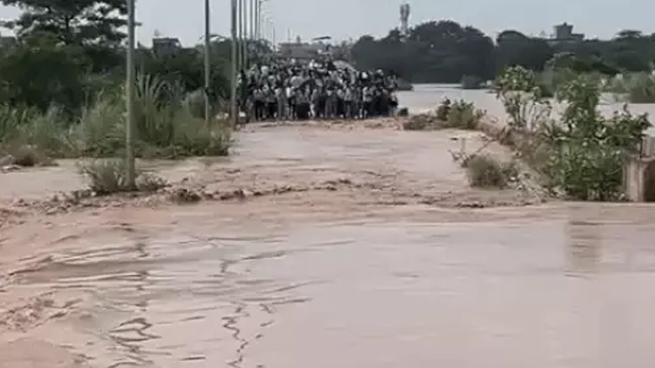 अंबाला में टांगरी नदी का पानी चंदपुरा रोड के ऊपर से बहता हुआ।