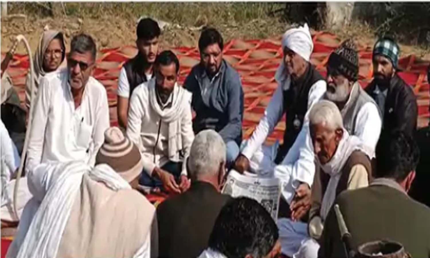 भिवानी के गांव ढाणी लक्ष्मण में धरना देते ग्रामीण।