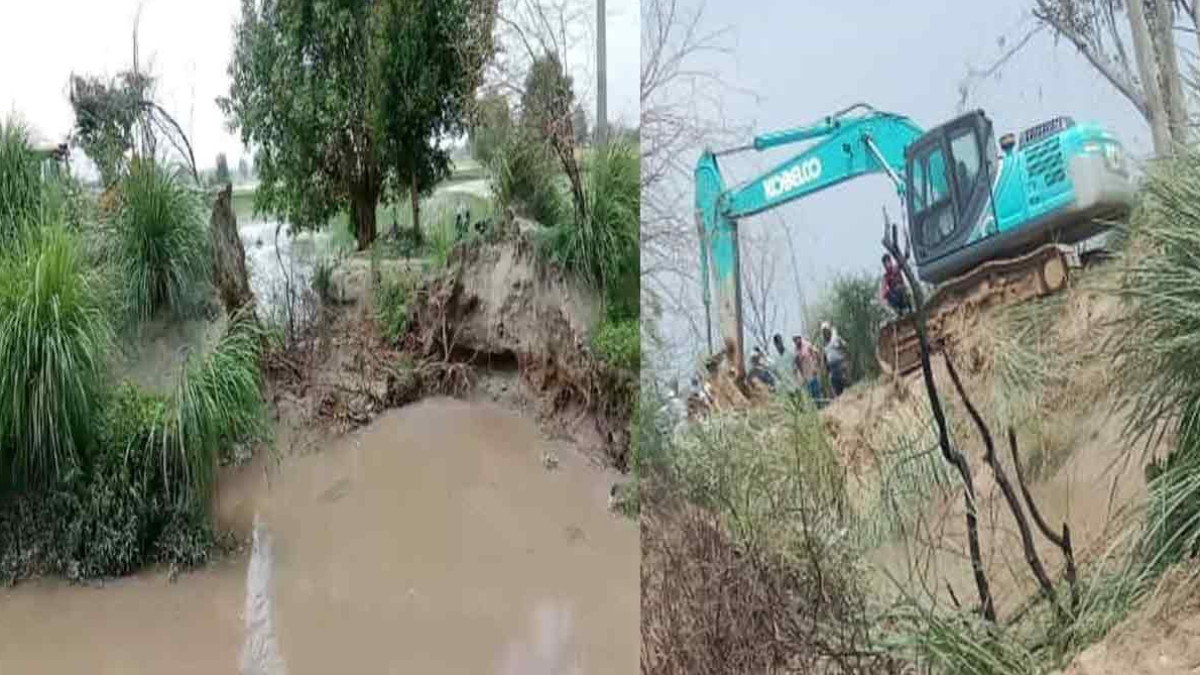 भिवानी में ओवरफ्लो होकर टूटा निगाना फीडर: तिगड़ाना के पास सैकड़ों एकड़ भूमि जलमग्न, दरार दुरुस्त करने में जुटा सिंचाई विभाग