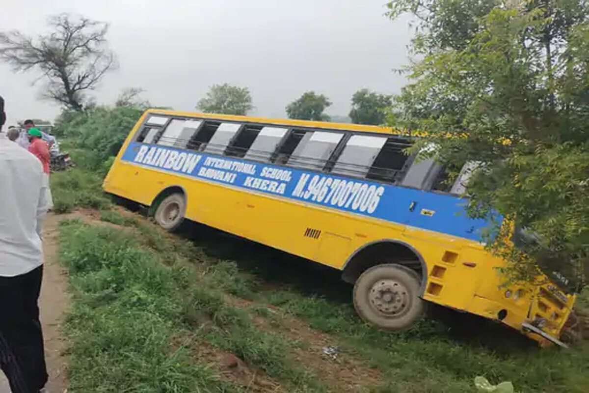 भिवानी में सड़क से नीचे उतरी स्कूल की बस।