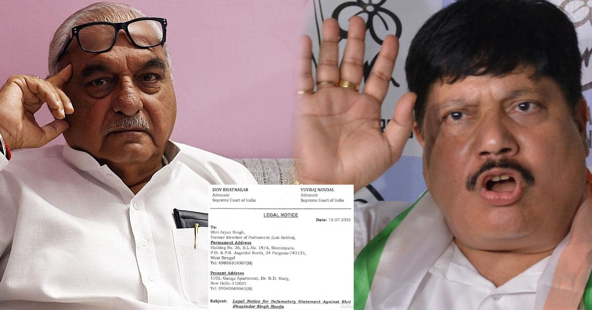 हरियाणा के पूर्व मुख्यमंत्री भूपेंद्र सिंह हुड्डा ने पूर्व BJP सांसद अर्जुन सिंह को मानहानि का नोटिस भेजकर 7 दिन में माफी मांगने की मांग की है। यह विवाद उनके द्वारा 8 जुलाई को दिए बयान के बाद शुरू हुआ है।