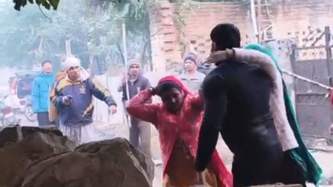 नूंह के गांव बिस्सर अकबरपुर में झगड़े का दृश्य।