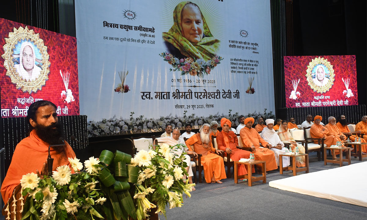 स्वामी रामदेव ने भावुक होते हुए कहा कि स्व. चौधरी मित्रसेन आर्य और माता परमेश्वरी देवी जी सदैव उन्हें अपना सातवां पुत्र मानते थे। मैं करोड़ों लोगों को आशीर्वाद देता हूं, लेकिन मैं सदैव आशीर्वाद लेने के लिए माता परमेश्वरी देवी के चरणों में अपना शीश झुकाता था। वे भी हमेशा मुझे पुत्र की तरह की लाड़ करती थीं। जरूरत होने पर डांटती भी थी और प्रेरित भी करती थीं। इन दोनों दिव्य आत्माओं ने आर्य समाज व सनातन परंपरा को जीवित रखने के लिए ताउम्र प्रयास व सहयोग किया। करीब 30 गुरुकुलों में उनके सहयोग से हजारों ब्रह्मचारियों ने वैदिक संस्कृति का ज्ञान अर्जित किया। सैकड़ों संस्थाओं में सहयोग करके उन्होंने समाज को नई राह दिखाने का काम किया। 89 वर्ष की उम्र में भी वे सदैव सक्रिय रहीं और वृद्धावस्था के बावजूद खेतीबाड़ी व पशुओं का ध्यान रखा। हमें उनके जीवन से सीख मिलती है कि किस तरह गांव से निकलकर एक साधारण महिला ने अपने अनुशासित जीवन से परिवार को ऊंचाइयों तक ले जाने का काम किया व राष्ट्र और समाजहित में खुद को समर्पित किया।