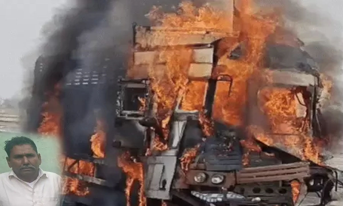 चरखी दादरी में ट्रक बना आग का गोला: शराब से भरे ट्रक ने खड़े वाहन में मारी टक्कर, ड्राइवर की जिंदा जलकर मौत