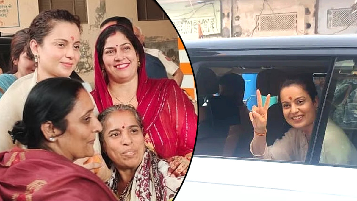 चरखी दादरी पहुंची कंगना रनौत: श्याम मंदिर में माथा टेका, विक्ट्री साइन दिखाकर खुशी का किया इजहार
