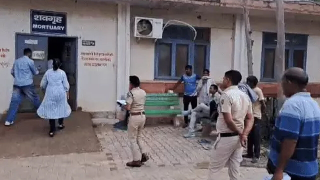 चरखी दादरी में छात्रा की मौत के बाद पोस्टमार्टम हाउस के बाहर मौजूद परिजन।