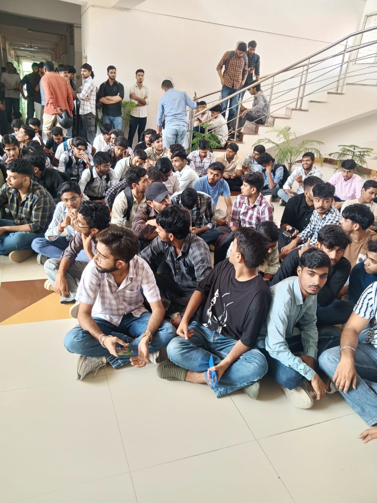 कुलपति कार्यालय के बाहर धरने पर बैठे विद्यार्थी।