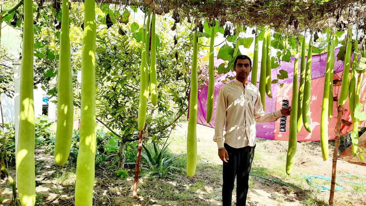 आर्गेनिक खेती की तरफ बढ़ते कदम: युवा किसान ने मचान तकनीक से लगाई आर्गेनिक लौकी, प्रतिवर्ष लाखों की ले रहे पैदावार