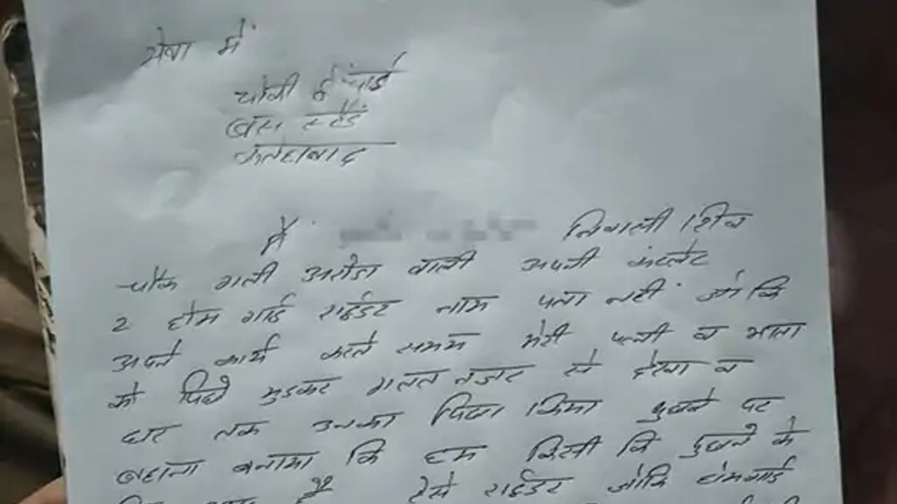 फतेहाबाद में पीड़ित परिवार की ओर से पुलिस को दी गई शिकायत।