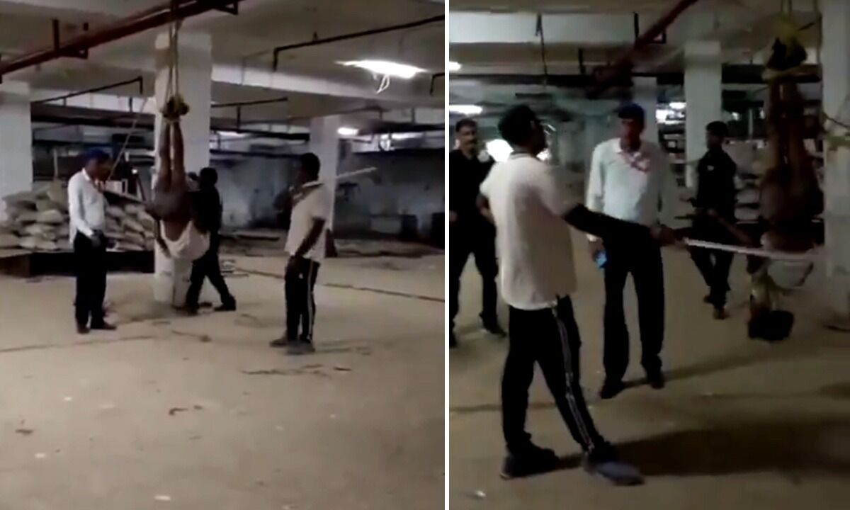 जानकारी के मुताबिक पूरा मामला गुरुग्राम के सेक्टर 37 का बताया जा रहा है। सोशल मीडिया पर वायरल वीडियो में सामने आया है कि एक बिल्डिंग की पार्किंग एरिया में 10 से ज्यादा लोग मौजूद हैं, इनमें से दो लोग पीड़ित व्यक्ति पैर रस्सी से बांधकर उसे लोहे के पाइप पर उल्टा लटका रहे हैं।