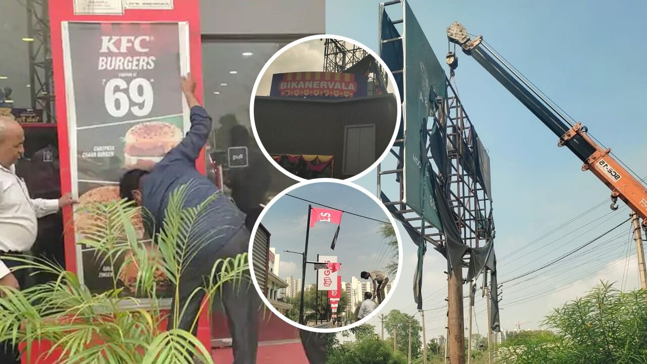 Gurugram Illegal Unipoles Hoardings: गुरुग्राम में मानेसर नगर निगम ने अवैध यूनीपोल और होर्डिंग्स के खिलाफ सख्त कार्रवाई की। MCM द्वारा इस अभियान के तहत बिना परमिशन लगाए गए कई बड़े ब्रांड के होर्डिंग को हटाया गया है। निगम ने मानेसर में पहली बार KFC और बीकानेर वाला जैसे ब्रांड के होर्डिंग पर भी कार्रवाई की है।