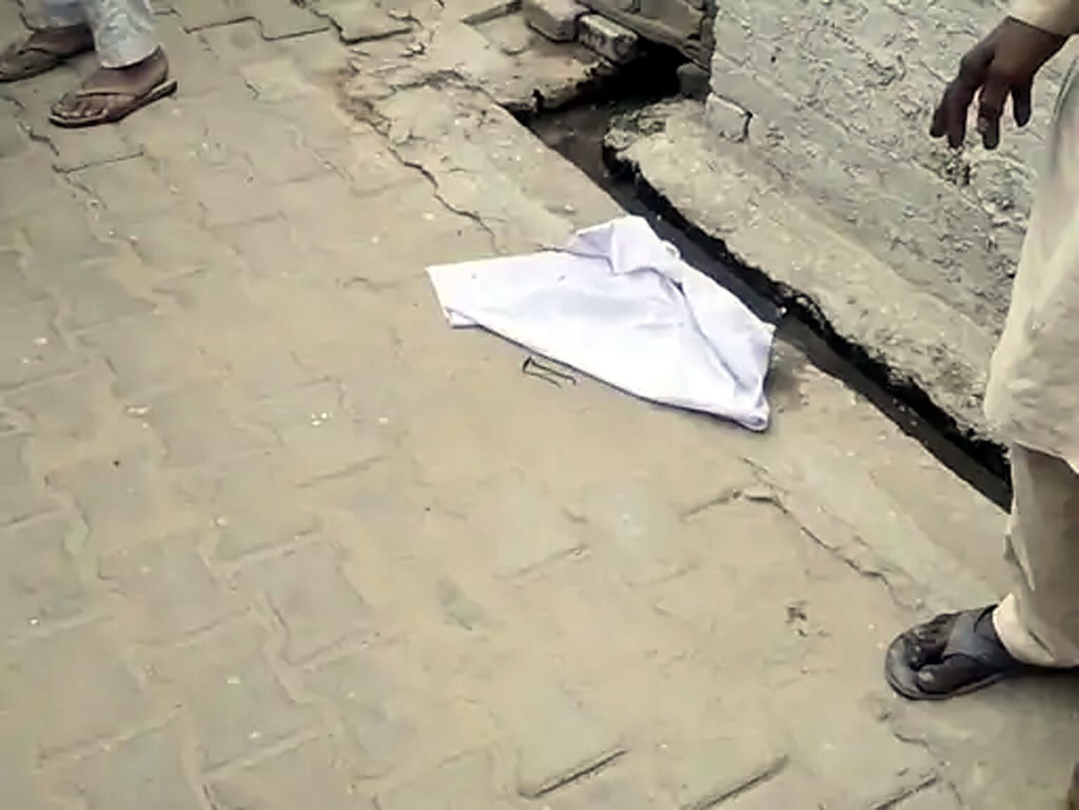 जाखल के गांव चांदपुरा में गुरुद्वारे वाली गली में पड़ा नवजात का शव।