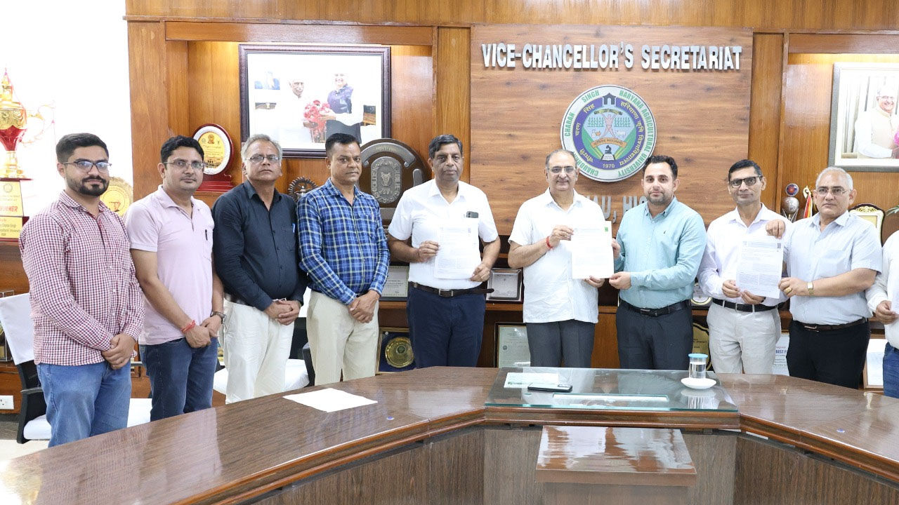 कुलपति प्रो. बी.आर. काम्बोज के साथ वैज्ञानिक।