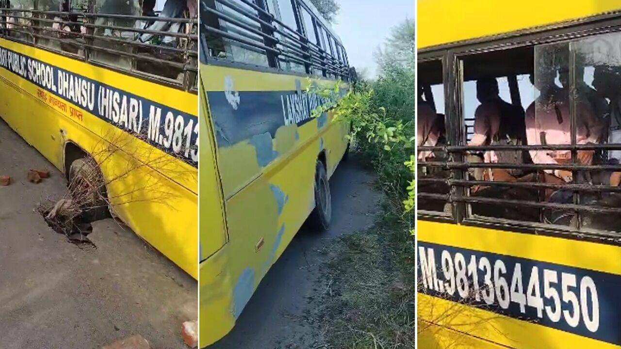 मीडिया रिपोर्ट्स के मुताबिक, हादसा हिसार के धांसू-बुगाना रोड पर हुआ। बस लक्ष्य पब्लिक स्कूल की बताई जा रही है। स्कूल के संचालक रमेश कुमार ने कहा कि बस हर रोज बुगाना गांव से बच्चे लेकर धांसू आती है। उन्होंने कहा कि आज भी बस सुबह रोज की तरह स्टूडेंट्स को लेकर स्कूल की ओर जा रही थी। इसी दौरान रोड के बीच बस का पिछला टायर सड़क में धंस गया। बस चालक ने तुरंत सभी बच्चों को बस से उतार दिया।