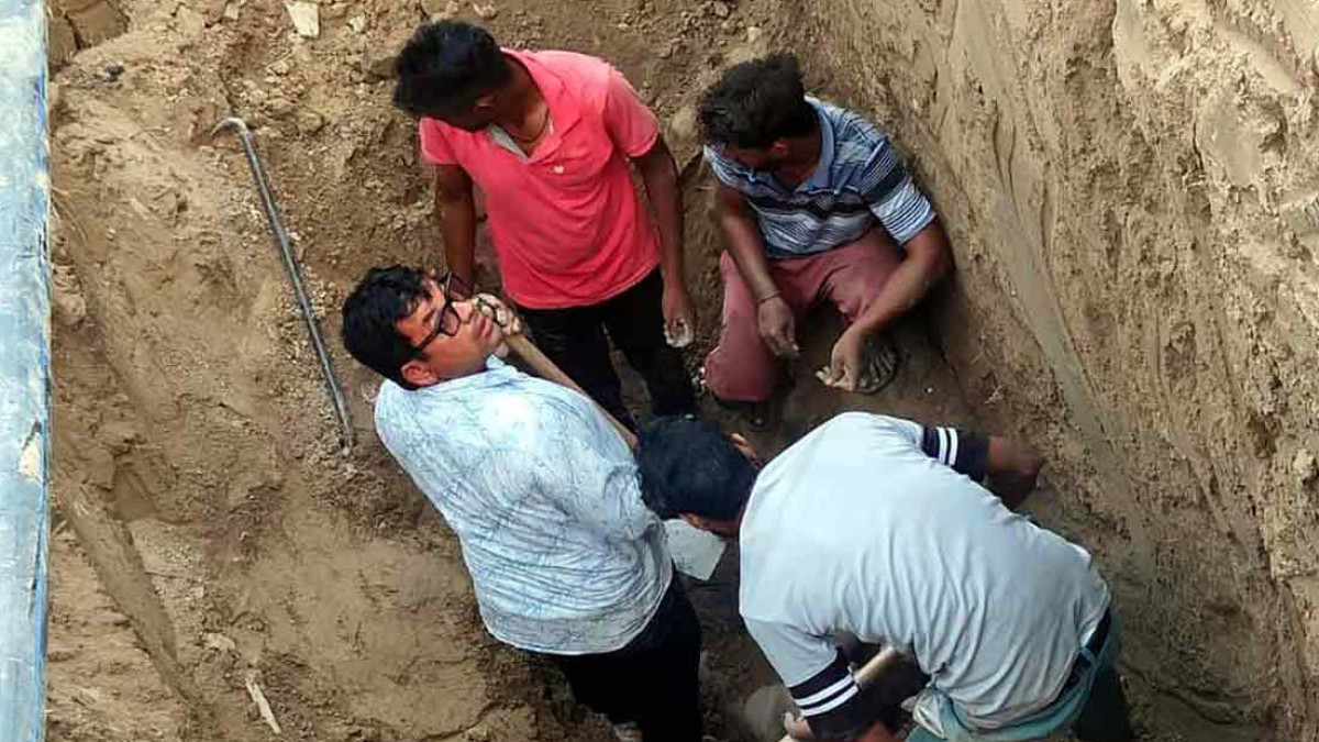 जानकारी अनुसार मजदूर दीपक और उसका साथी अजीत मिट्टी की खुदाई के बाद बाहर निकल रहे थे। इस दौरान दीपक मिट्टी के ढेर तरफ से बाहर आने लगा तो मिट्टी उसके ऊपर गिर गई। मौके पर मौजूद करीब 5-6 मजदूरों ने मिट्टी हटाने का काम शुरू किया। जेसीबी मशीन भी बुलाई गई। मिट्टी हटाने में करीब 30 मिनट लगे। इस दौरान दीपक का दम घुट गया और वह बेसुध हो गया। बाहर निकालने के बाद उसे तुरंत नागरिक अस्पताल ले जाया गया, जहां डॉक्टर ने उसे मृत घोषित कर दिया। पुलिस मामले की जांच कर रही है।