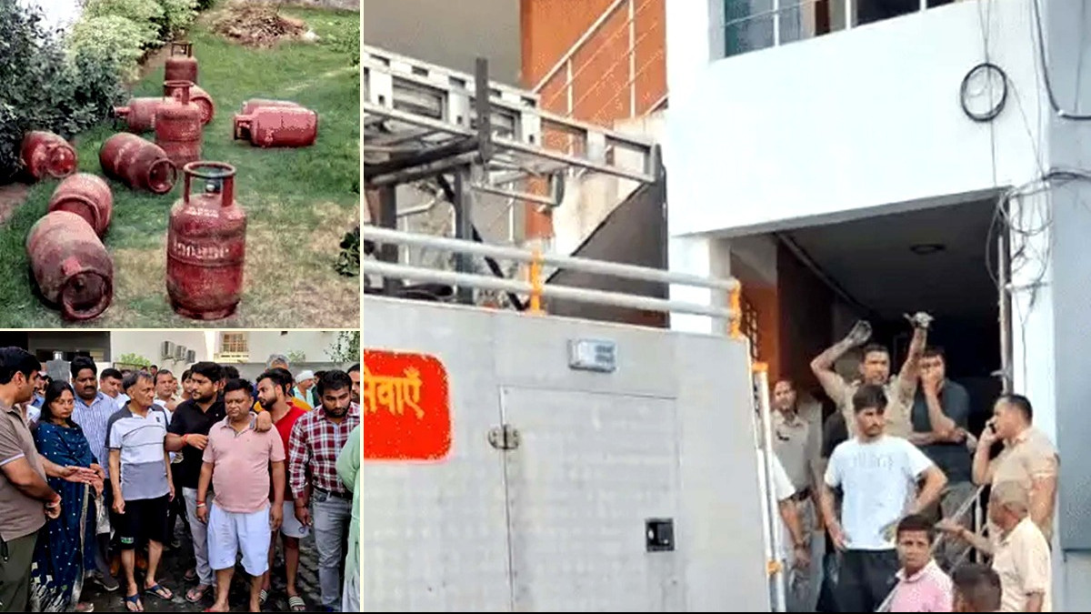 दमकल विभाग ने बिल्डिंग में रखे सिलेंडरों को पार्क में फेंका