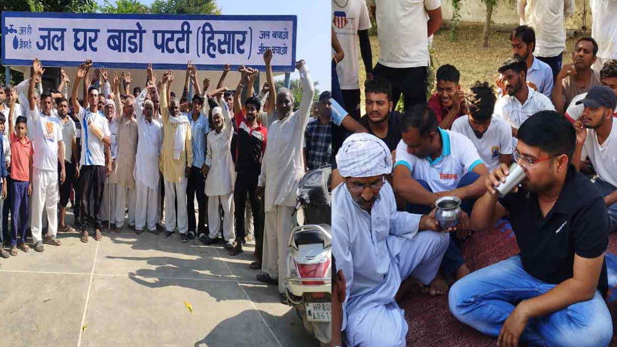 हिसार में पानी को लेकर ग्रामीणों का हंगामा: बाडो पट्टी जलघर पर गुस्साए लोग, जेई को वाटर टैंक का पिलाया पानी
