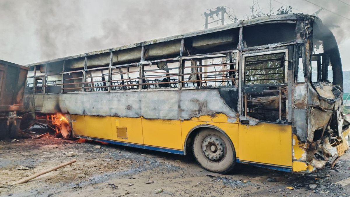 बहादुरगढ़ में बुधवार की रात एक ट्रॉला अनियंत्रित होकर सड़क किनारे खड़ी बसों से टकरा गया। इस हादसे में तीन बसों में आग लग गई। सूचना पर पहुंची दमकल विभाग की टीम ने आग पर काबू पाया।