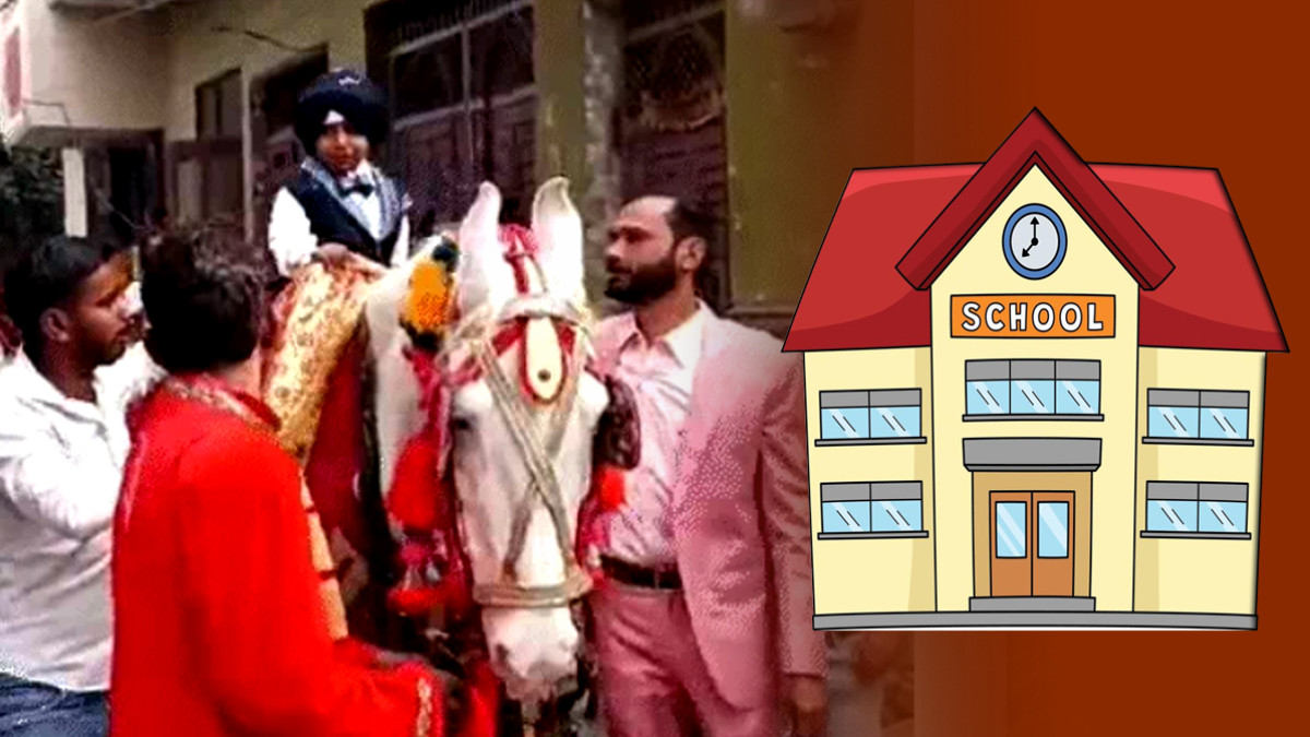बहादुरगढ़ में पैरेंट्स ने बेटे को घोड़ी पर बैठाकर भेजा स्कूल, पहले दिन को ऐसे बनाया यादगार
