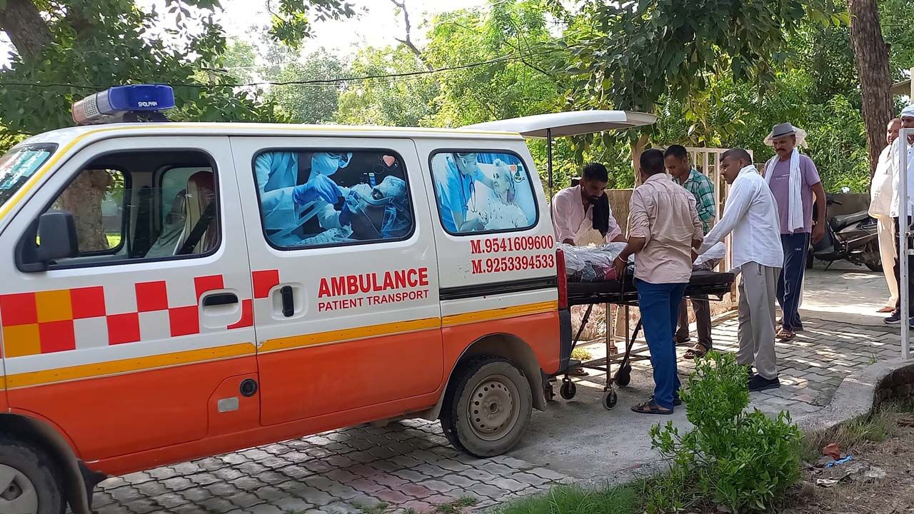 झज्जर में पोस्टमार्टम के बाद शव ले जाते हुए परिजन।