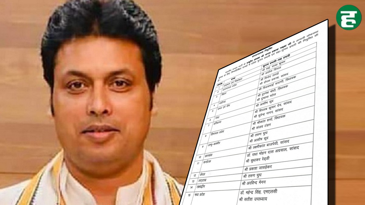 Lok Sabha Election 2024: आगामी लोकसभा चुनाव की तैयारी में बीजेपी जुट गई है। बीजेपी ने दूसरे राज्यों के साथ-साथ हरियाणा के लोकसभा इलेक्शन इंचार्ज के नाम की घोषणा कर दी है। बीजेपी अध्यक्ष जेपी नड्डा ने त्रिपुरा के पूर्व मुख्यमंत्री विप्लव देव को हरियाणा में लोकसभा इलेक्शन इंचार्ज बनाया है। इसके साथ ही भाजपा ने सह प्रभारी के भी नाम की घोषणा की है। भाजपा ने सह प्रभारी के लिए सांसद सुरेंद्र नागर के नाम की घोषणा की है। बता दें कि विप्लव देव पहले से ही हरियाणा भाजपा प्रभारी हैं।