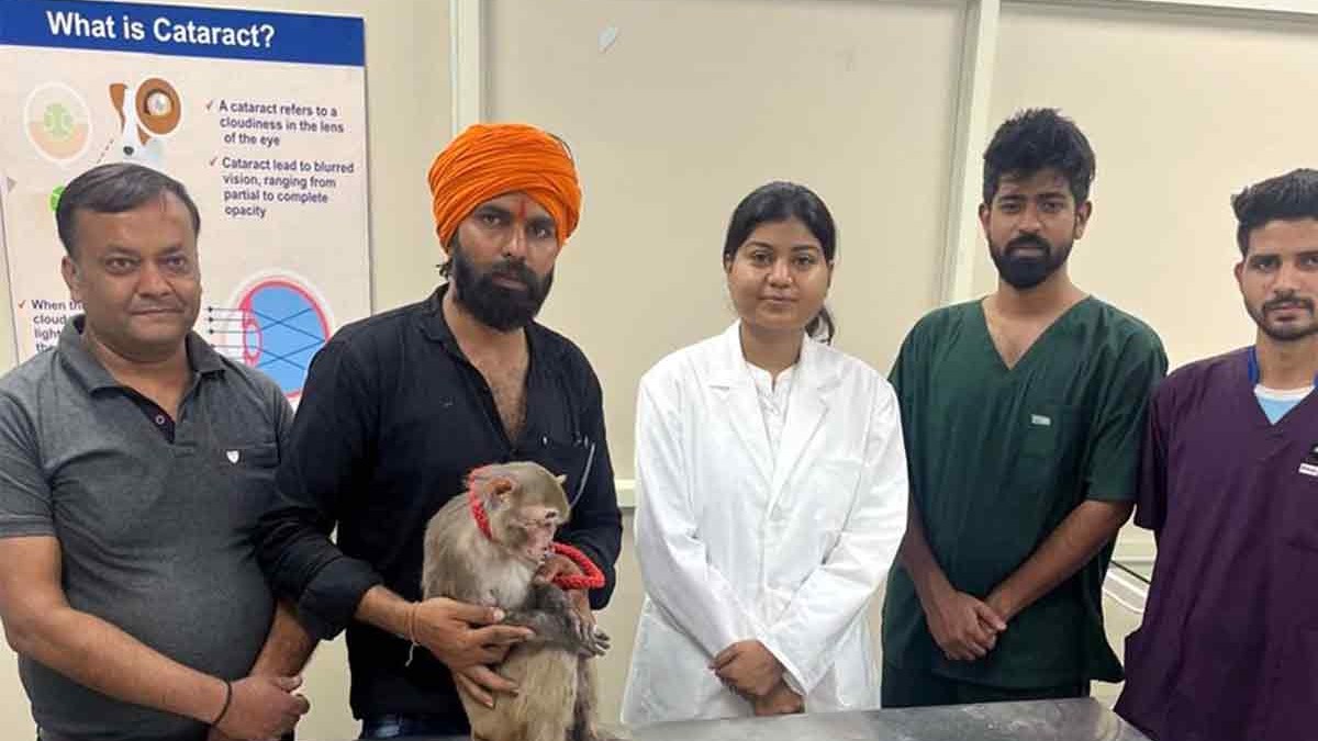हिसार में अंधे बंदर को मिली नई रोशनी: लुवास में पहली बार मोतियाबिंद की हुई सफल सर्जरी, वीसी ने दी बधाई