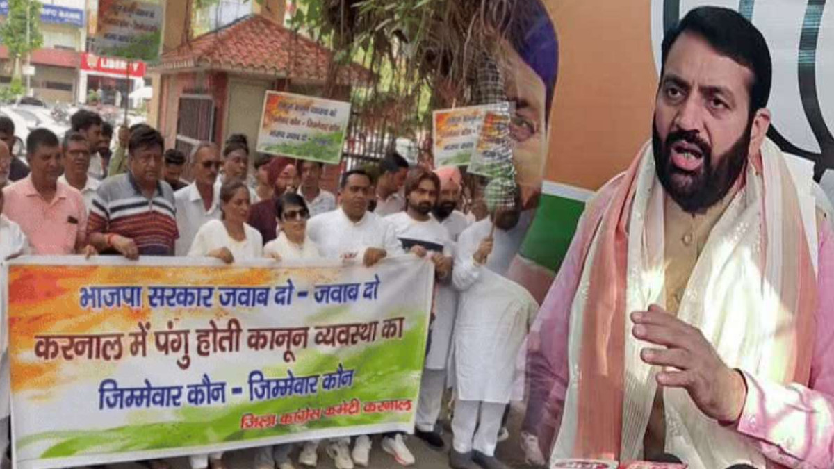 Congress Party Protest in Karnal: करनाल में गुरुवार को बढ़ते क्राइम रेट के खिलाफ कांग्रेस पार्टी ने प्रदर्शन किया। इस विरोध प्रदर्शन में कांग्रेस के कई नेता और कार्यकर्ता शामिल हुए।