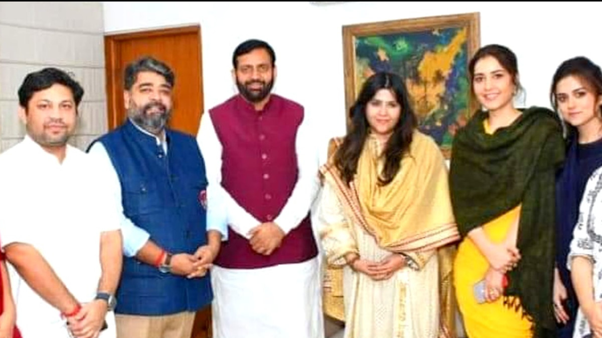प्रोड्यूसर एकता कपूर ने आज हरियाणा भवन पहुंचकर सीएम नायब सैनी से मुलाकात की। इस दौरान एक्ट्रेस राशि खन्ना और रिद्धि डोगरा भी मौजूद रहीं।