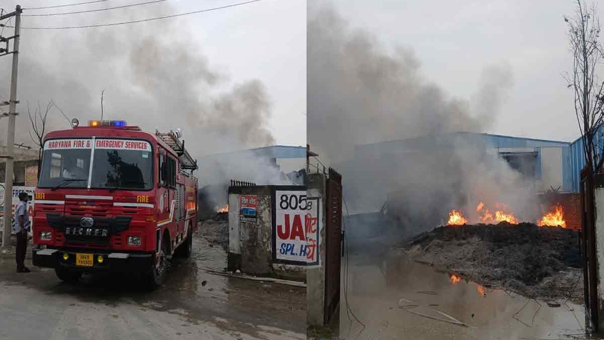 सोनीपत में फिर लगी फैक्टरी में आग: रबड़ की पिसाई कर दाना बनाने का होता है काम, दमकल विभाग ने पाया आग पर काबू