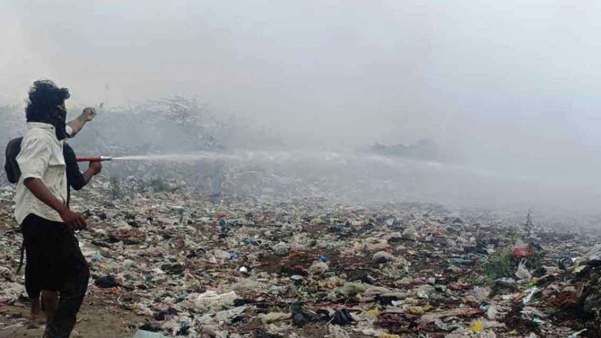 डंपिंग यार्ड की आग बुझाने में कर्मचारियों को बहाना पड़ा पसीना