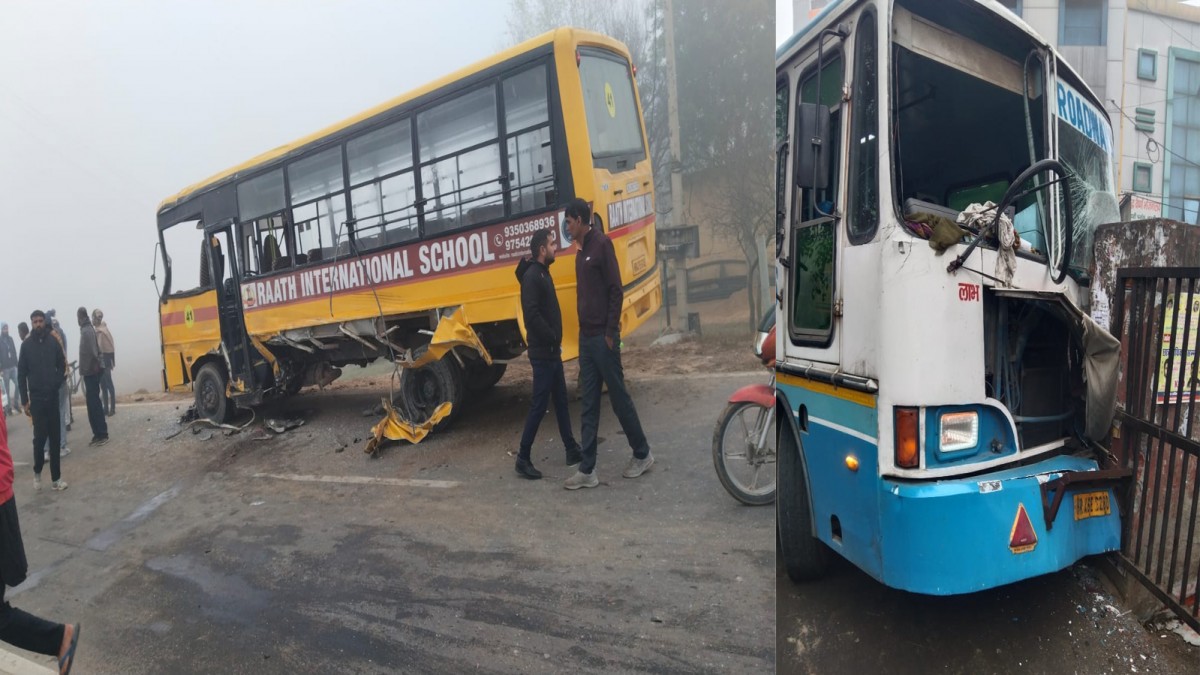 कोहरे का कहर: नारनौल में स्कूल बस व ट्रॉले में भिड़ंत, हिसार में बस स्टैंड के गेट से टकराई रोडवेज, घायल अस्पताल में भर्ती