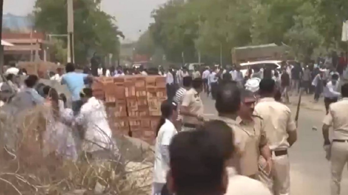 गुरुग्राम में हिंसक प्रदर्शन: कई वाहनों में की तोड़फोड़, एक पुलिसकर्मी हुए घायल