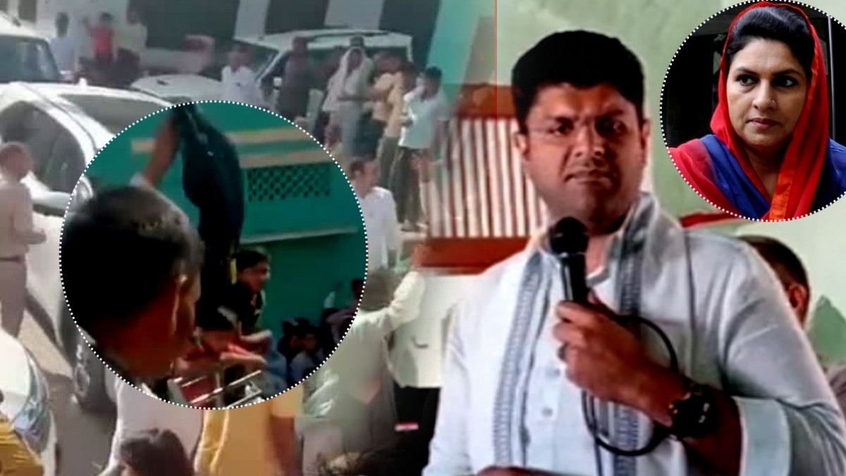 दुष्यंत ने भिवानी में खोया आपा: काले झंडे दिखाने वालों को पकड़ा, बोले- नैना चौटाला हिसार से पहली महिला सांसद बनेंगी