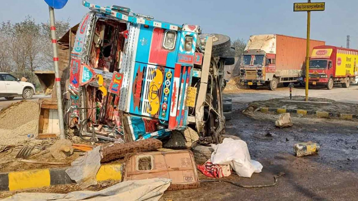 Yamunanagar: नेशनल हाईवे 344 के सुढै़ल मोड़ पर देर रात पत्ता कुट्टी से भरे कैंटर व रेत बजरी से भरे ट्रक की आमने सामने की भिडंत हो गई। हादसा इतना दर्दनाक था कि दोनों वाहन टक्कर के बाद हाईवे पर पलट गए। हादसे में कैंटर चालक की मौके पर ही मौत हो गई। जबकि ट्रक चालक घायल हो गया। हादसे के बाद नेशनल हाईवे पर जाम लग गया। मृतक की पहचान पंजाब के लुधियाना के मलसीया गांव निवासी सुखदेव पाल के रूप में हुई। पुलिस ने शव कब्जे में लेकर पोस्टमार्टम कराने के बाद परिजनों को सौंप दिया और आरोपी ट्रक चालक के खिलाफ मामला दर्ज कर जांच शुरू कर दी।