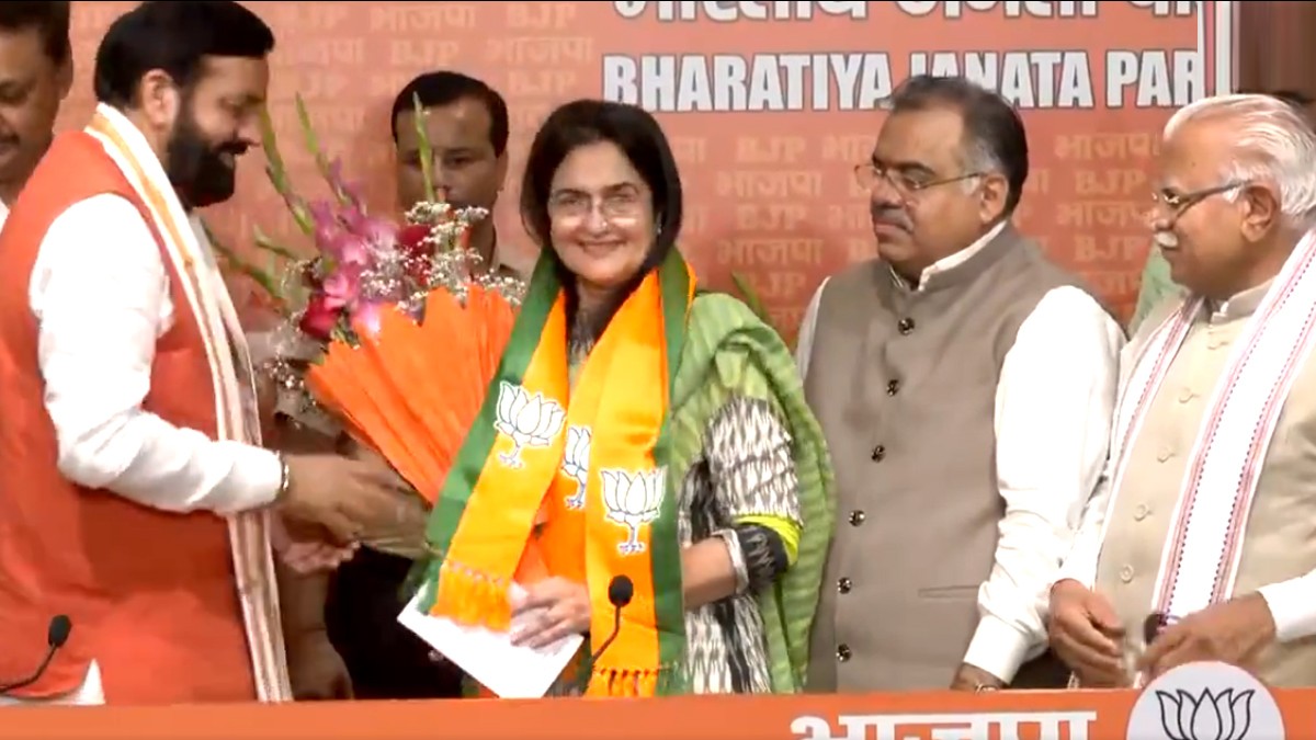 #WATCH दिल्ली: पूर्व कांग्रेस नेता किरण चौधरी अपनी बेटी श्रुति चौधरी के साथ हरियाणा CM नायब सिंह सैनी, केंद्रीय मंत्री मनोहर लाल खट्टर और भाजपा नेता तरुण चुघ की मौजूदगी में भाजपा में शामिल हुईं। pic.twitter.com/0mZv9g2vpL