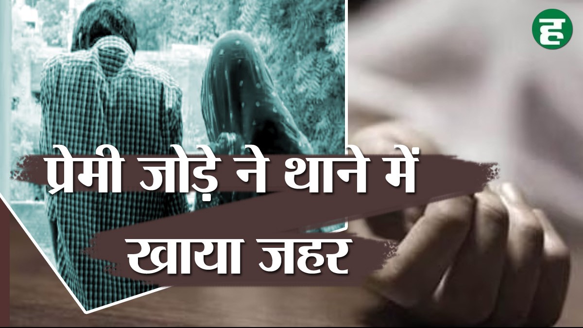 फरीदाबाद में एक प्रेमी जोड़े ने पुलिस और परिजनों के सामने ही जहर खा लिया है। थाने में जहर खाने से पुलिस के हाथ पांव फूल गए।