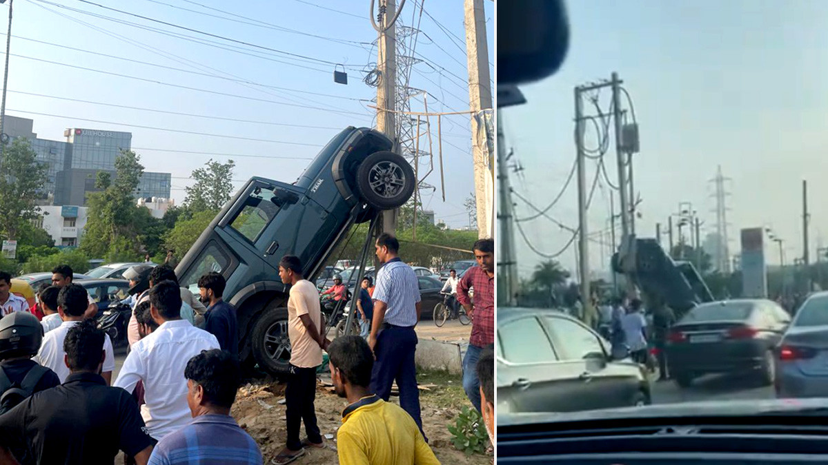 अरे वाह...ये तो बड़ा हैवी ड्राइवर है: गुरुग्राम में बिजली के खंभे पर जा चढ़ी तेज रफ्तार थार, जमकर वायरल हो रहा वीडियो