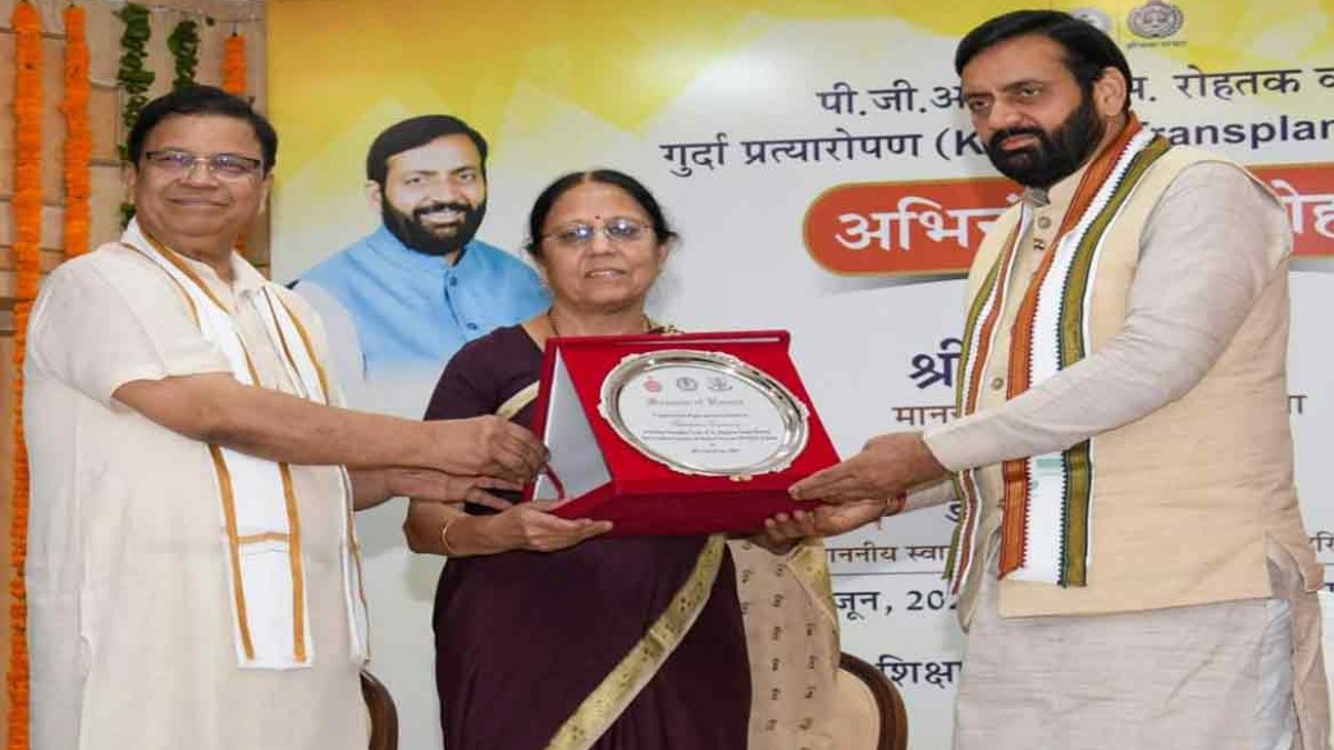 Rohtak: हरियाणा के मुख्यमंत्री नायब सिंह सैनी ने कहा कि पोस्ट ग्रेजुएट इंस्टीट्यूट ऑफ मेडिकल साइंसेज (पीजीआईएमएस) रोहतक में जल्द ही स्टेट ट्रांसप्लांट सेंटर शुरू किया जाएगा, ताकि किडनी सहित अन्य अंगों के ट्रांसप्लांट को सुगम बनाया जा सके। राज्य सरकार पीजीआईएमएस को और बेहतर बनाने के लिए हर संभव सहायता प्रदान करेगी। मुख्यमंत्री पीजीआईएमएस की गुर्दा प्रत्यारोपण टीम के सम्मान में आयोजित अभिनंदन समारोह को संबोधित कर रहे थे।