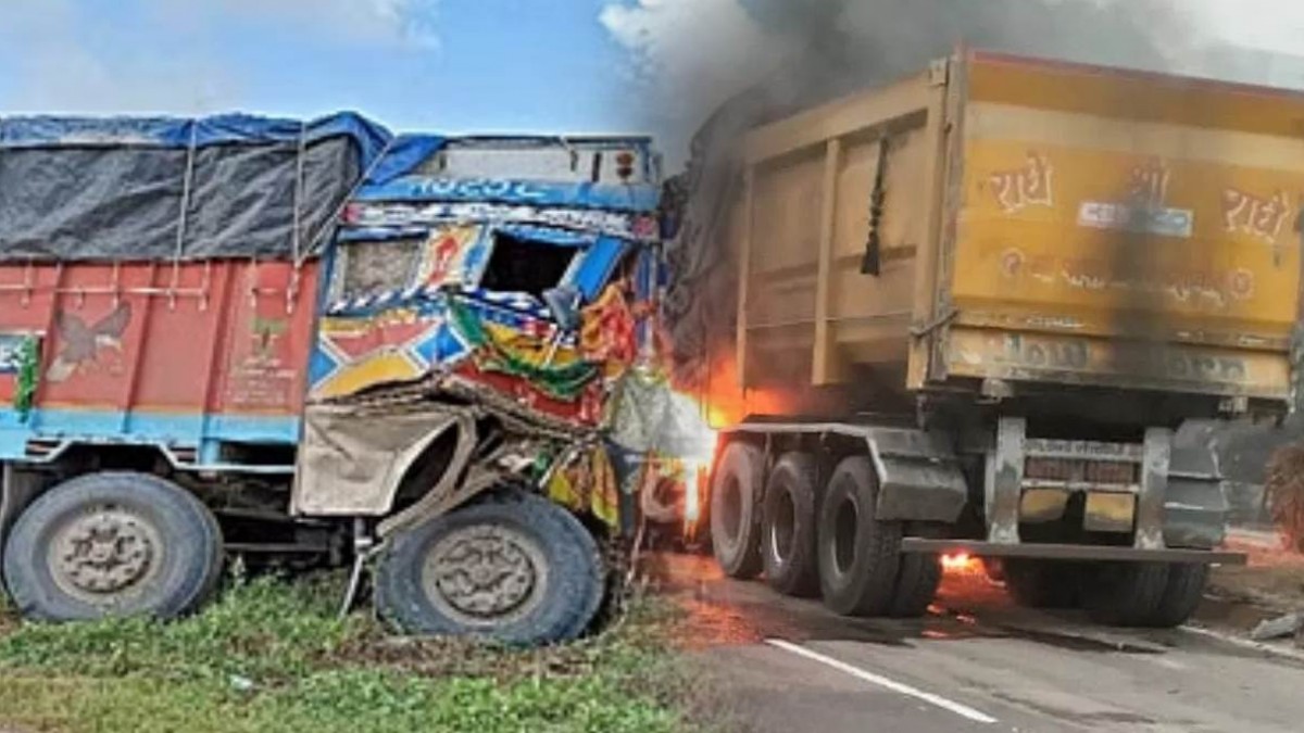 झज्जर में दो डंपरों की जोरदार टक्कर: दोनों में लगी भीषण आग, जलने से चालक की मौत