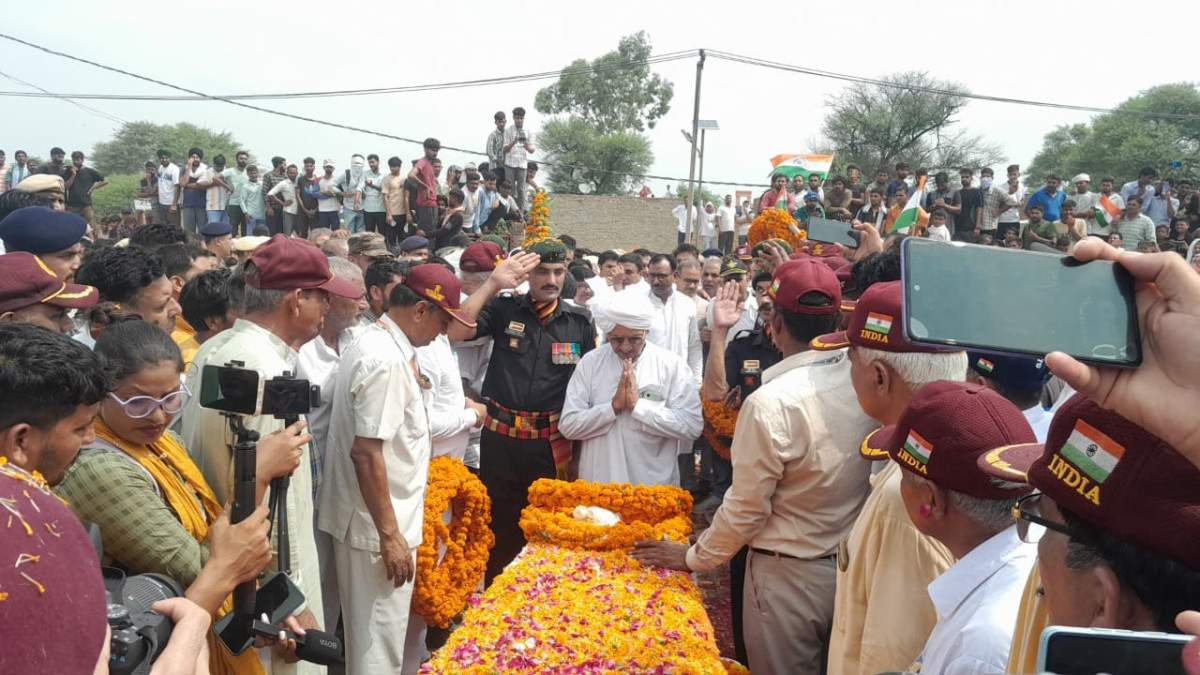 Pradeep Nain Merged: कुलगाम जम्मू कश्मीर में आतंकवादियों से लोहा लेते समय मुठभेड़ में शहीद हुए पैरामिल्ट्री कमांडो लांस नायक प्रदीप नैन का सोमवार को जींद के गांव जाजनवाला में राजकीय सम्मान के साथ अंतिम संस्कार कर दिया। आर्मी की टुकड़ी ने शस्त्र झुका कर उन्हें अंतिम सलामी दी। तिरंगे में लिपटे अपने लाडले के शव को देख ग्रामीण फफक कर रो पड़े। प्रदीप नैन के पार्थिव शरीर को आर्मी की तिरंगे से सजी गाड़ी से लाया गया। जिसकी अगवानी तिरंगे लगी गाडिय़ों तथा बाइकों के काफिले ने की। पूरे गांव को तिरंगे से सजाया गया था।