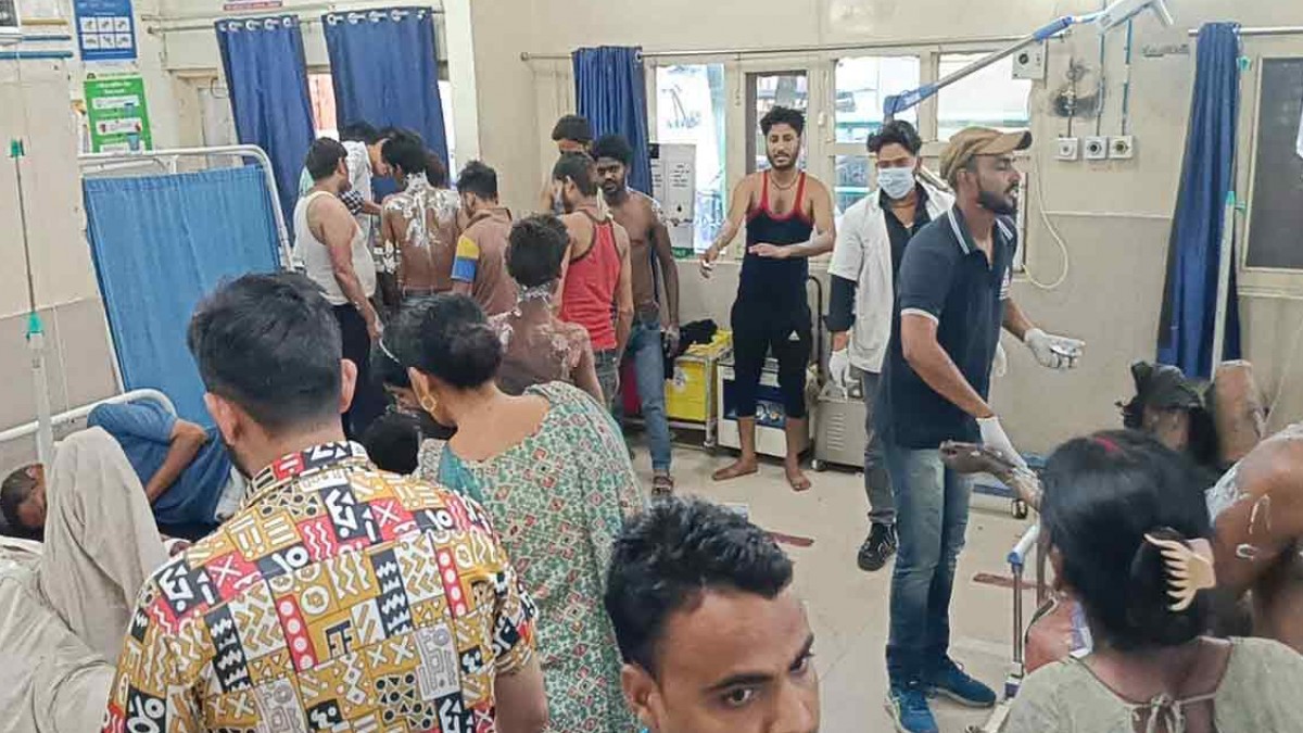 हादसे की जांच में जुटी पुलिस व दमकल विभाग की टीम