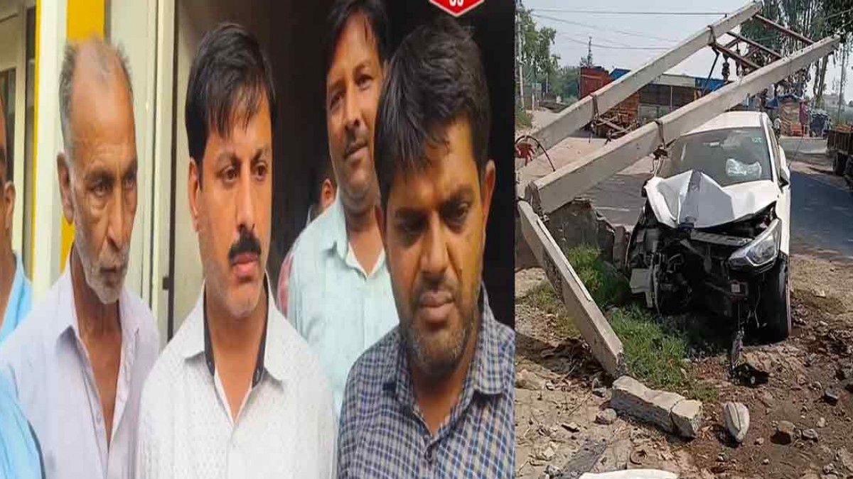 खंबे से टकराई कार, एयरबैग खुलने से 4 व्यक्ति बाल-बाल बचे