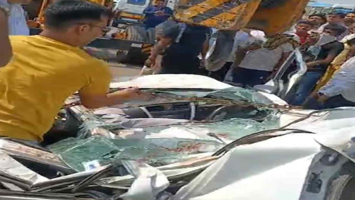 गन्नौर में दर्दनाक सड़क हादसा: कार पर पलटा कैंटर, आम आदमी पार्टी से जुड़े एक व्यक्ति की मौत, क्रेन से निकाली कार