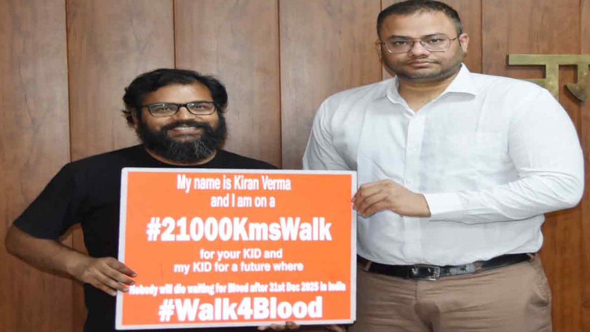 रक्तदान का अनोखा संदेश: 21 हजार किलोमीटर पैदल चलकर रेवाड़ी पहुंचे किरण, अधिकारियों से की मुलाकात