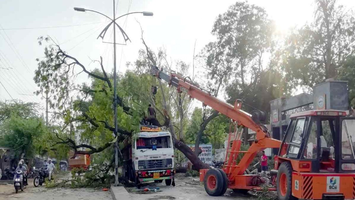 गर्मी में अब तक मौसम को खुशगवार बना देने वाली अच्छी बरसात बेशक नहीं हुई है, लेकिन सोमवार को सायं करीब चार बजे जब तेज धूप गिर रही थी, तब अचानक तूफान के साथ जोरदार बरसात शुरू हो गई। आसमान में उस वक्त घने काले बादल तो दूर, बरसात दूर-दूर तक दिखाई नहीं दे रही थी, लेकिन अचानक जोरदार तूफानी बरसात शुरू हो गई। इस तूफान में इलाके में पेड़, बिजली के पोल एवं ट्रांसफार्मर आदि गिर गए तथा बिजली गुल हो गई। इस तूफान ने सबसे ज्यादा तबाही रेलवे रोड पर मचाई। पुराने रेलवे स्टेशन रोड पर बसी प्रवासी लोगों की कॉलोनी में नीम का एक भारी पेड़ संतोष पत्नी अशोक के मकान पर गिर गया। हालांकि मकान मालिक दंपत्ति इन दिनों अपने घर महाराष्ट्र जाने के चलते वह बंद था, जिस कारण किसी जान की हानि नहीं हुई, लेकिन मकान को नुकसान हो गया।