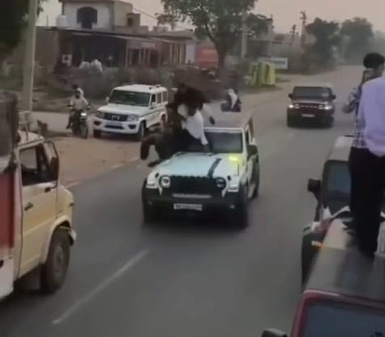 हरियाणा के DGP ओपी सिंह ने थार को अपराधियों का प्रतीक बताया था। मेवात में थार की छत पर हुड़दंग कर तीन युवकों ने उसे सच साबित कर दिया। हुड़दंग करते तीनों युवक ब्रेक लगने से सड़क पर गिर गए। गनीमत रही कि पीछे आ रहे कैंटर चालक ने गाड़ी को ब्रेक लगा दिया। अन्यथा हुड़दंगबाजी में तीनों की जान भी जा सकती थी। इस घटना का वीडियो अब सोशल मीडिया पर खूब वायरल हो रहा है। जिसके बाद पुलिस ने भी थार चालक व स्टंटबाजों के खिलाफ कार्रवाई की बात कही है।