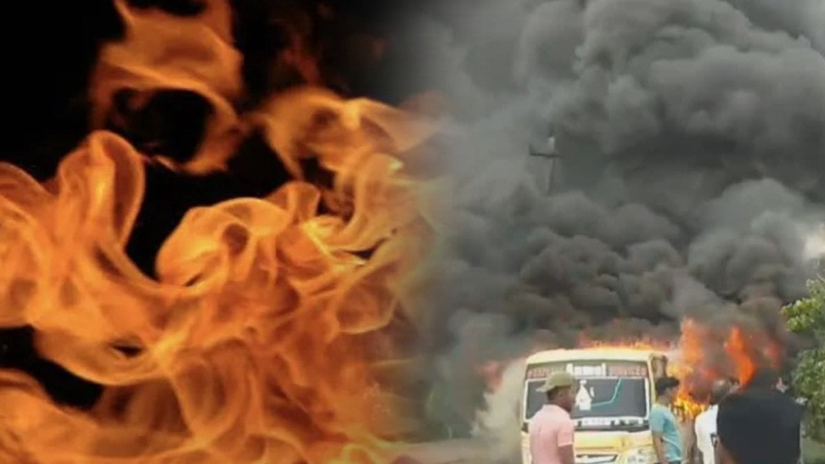Massive fire in Bus: हरियाणा के नूंह में सोमवार को बीच सड़क पर खड़ी एक बस में अचानक ही भीषण आग लग गई। फायर ब्रिगेड ने घंटों मशक्कत के बाद आग पर काबू पाया।