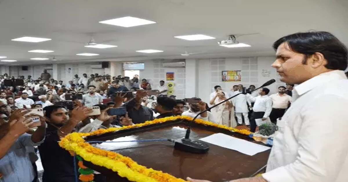 युवाओं को संबोधित करते खेल राज्यमंत्री गौरव गौतम।