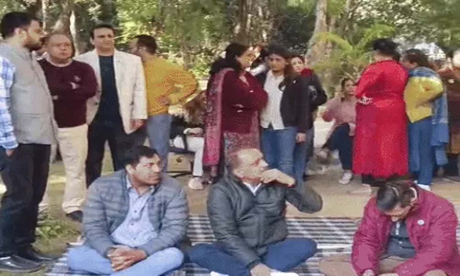 पंचकूला में डीजी ऑफिस के बाहर भूख हड़ताल करते डॉक्टर।